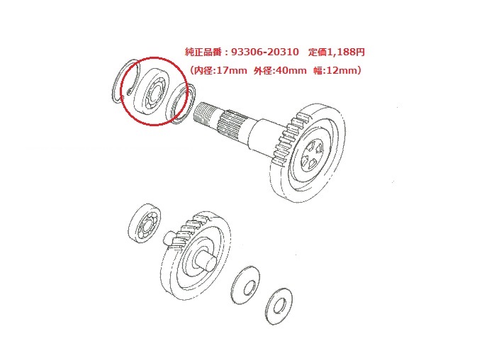 ベアリングは、純正が思ったより割高だったので、同じサイズの汎用品で要検討。