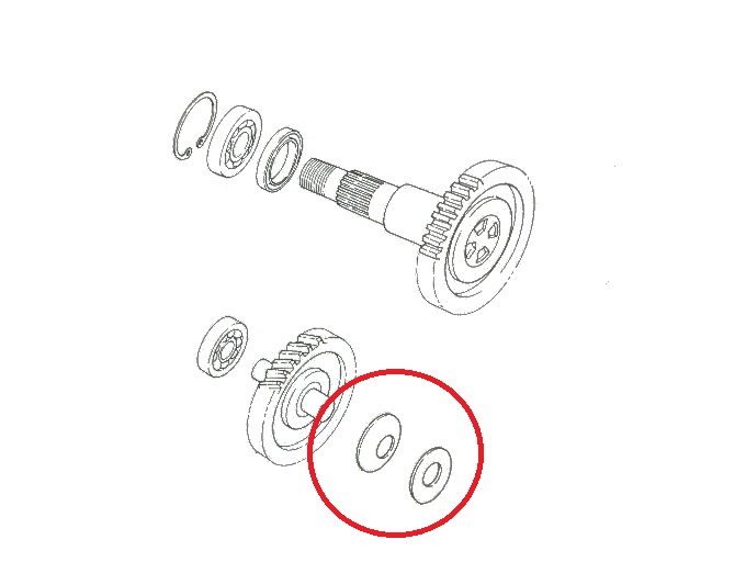 A:プライマリドライブギア(クラッチ奥、ギアカバー側)