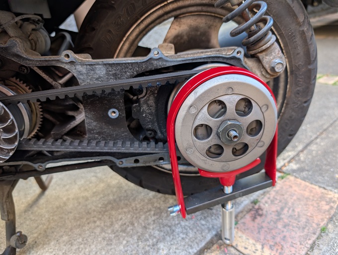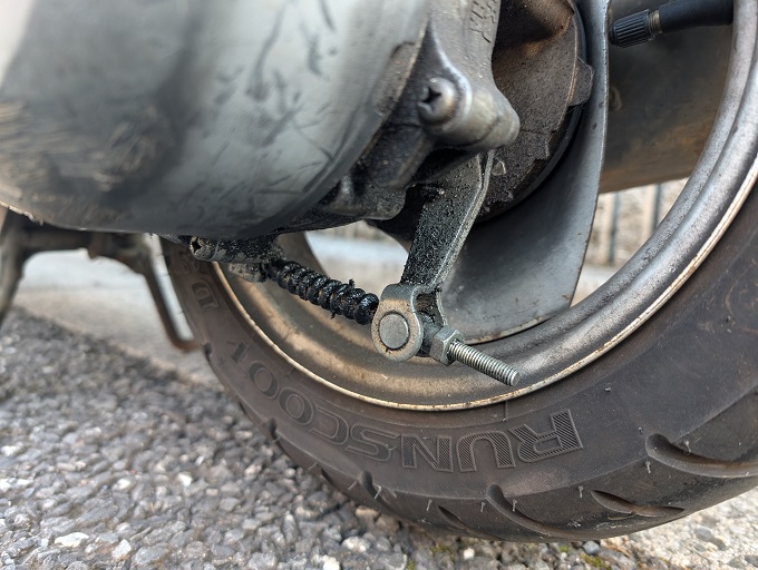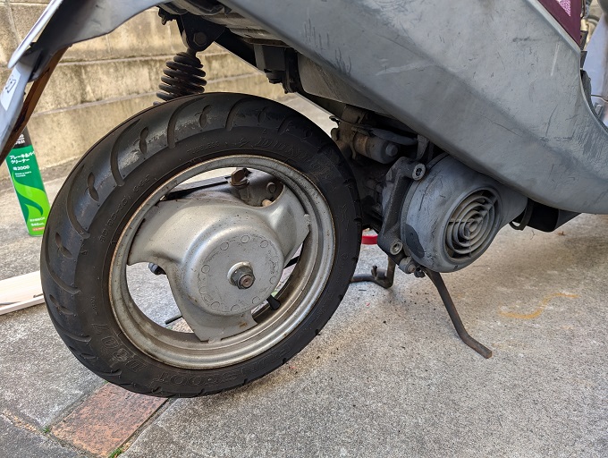 リアブレーキをかけた状態でリアホイールのナットを外して…