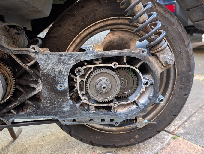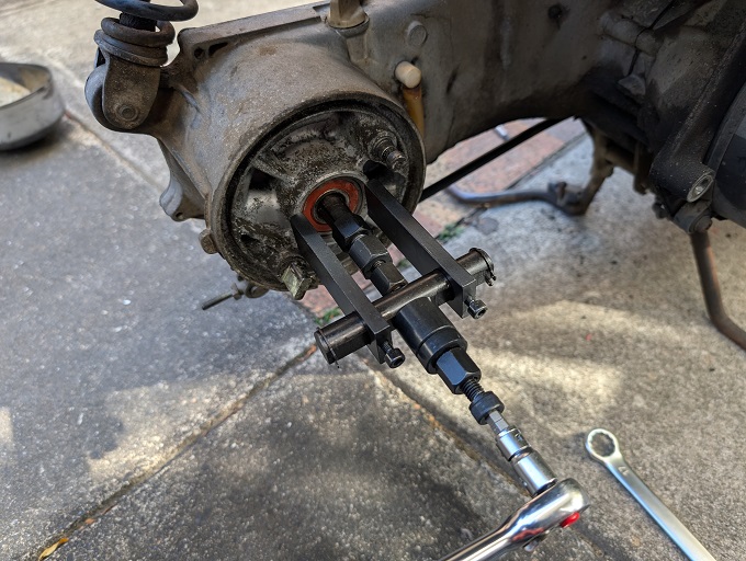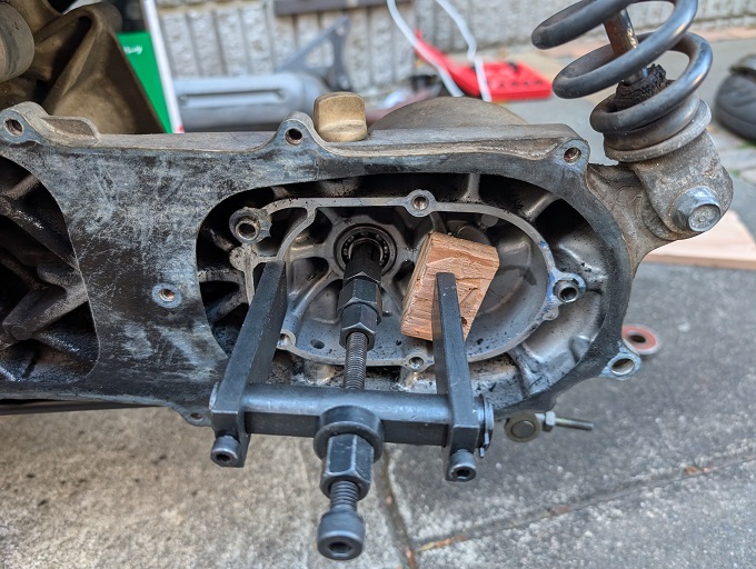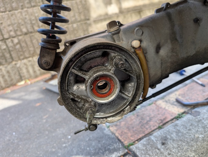 ジョグアプリオ[2stスクーターYJ50_4JP1]ギアオイル漏れ修理【その3】ミッション・ファイナルギアベアリング交換