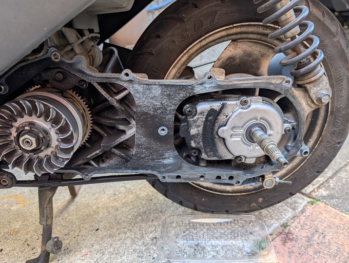 クラッチも外すと、今回の容疑者であるギアケースが登場します。
