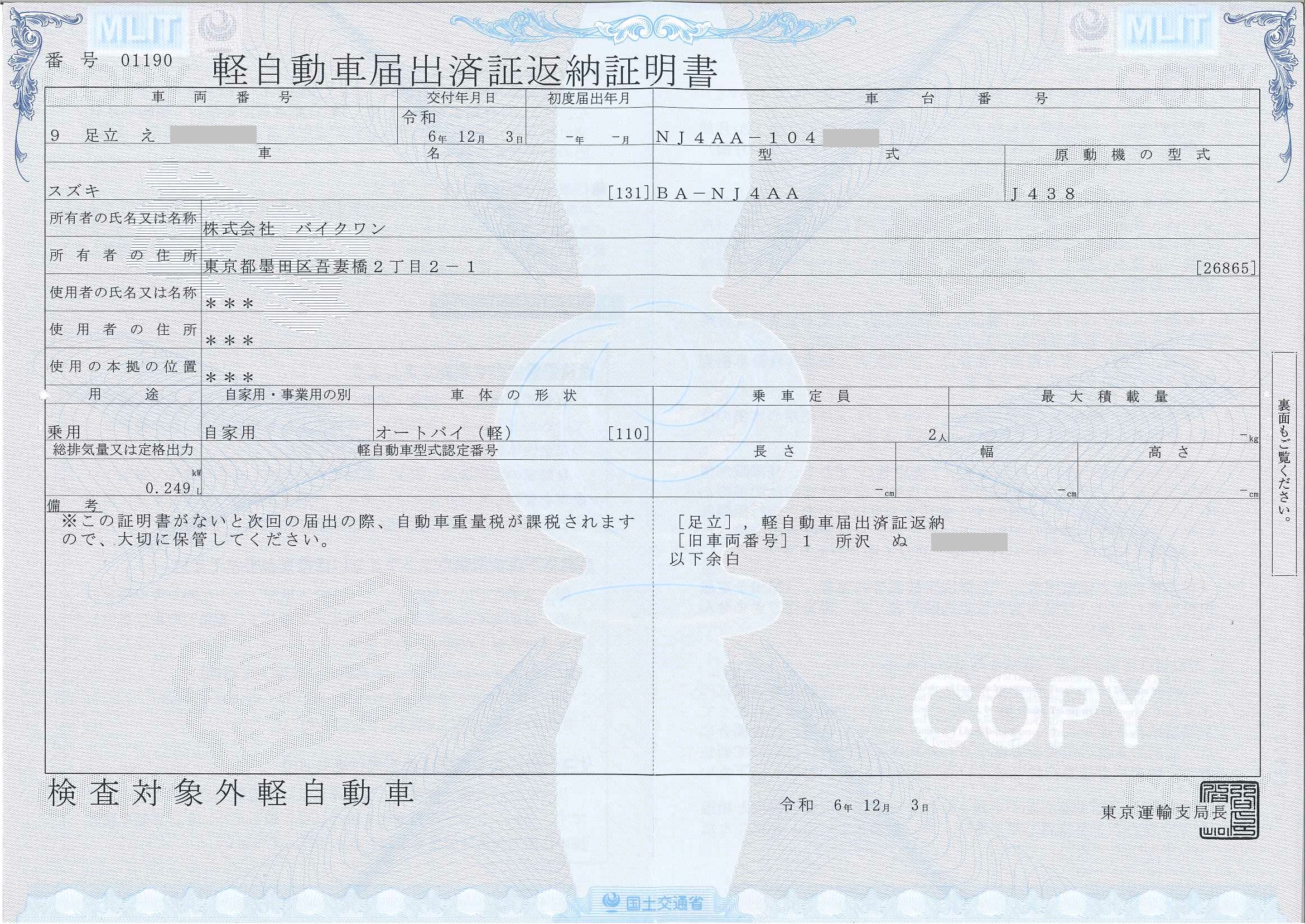 そして、この軽自動車届出済証を持ってナンバーセンター(練馬陸運局ではB棟)へ行って、