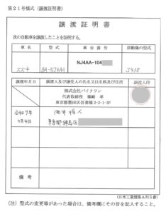 今回は廃車済みの軽二輪バイクの新規登録になるのですが、必要書類と記入例について整理しておきたいと思います。