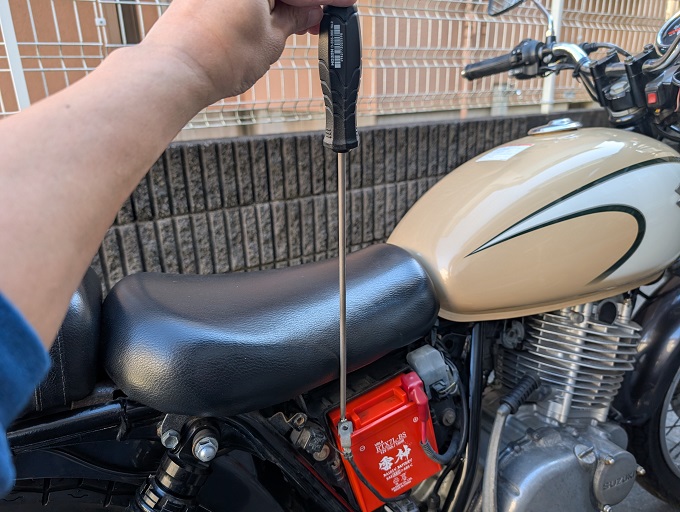 ちなみに、ドライバーの形状によってはバッテリー交換時にシートが邪魔になる可能性があるので、長めのものがオススメです。