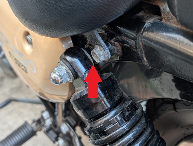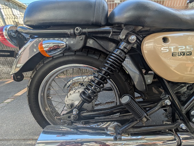 ST250 E-Type ローダウンサスペンションとサイドスタンドの傾きの話(純正リアサスの長さは何ミリ?)