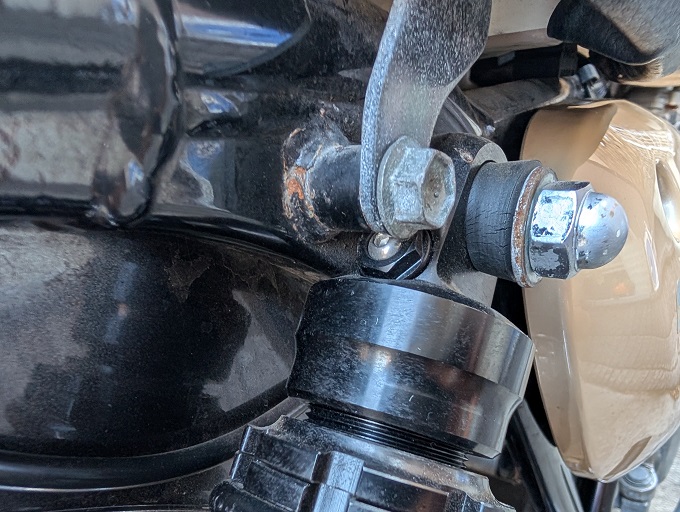 右側のアッパー部分のブッシュとカラーが飛び出ています。