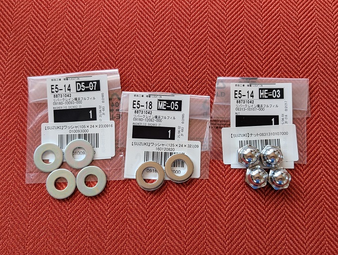 左側と比較したところ、上記写真の矢印の部分にあるべきインナー側のワッシャーが入っていないことが判明しました。