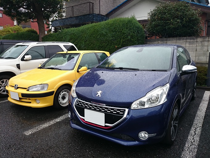 写真:久々に復活したプジョー208GTi(引き上げに同行した106との2ショット)