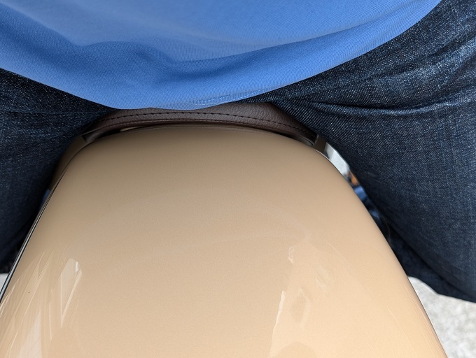 私のライディングポジション(169cm・短足)ではシートとタンクが干渉することはないのですが、