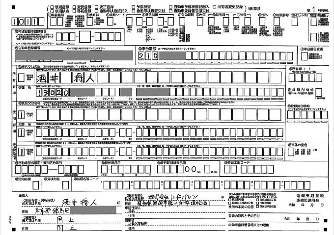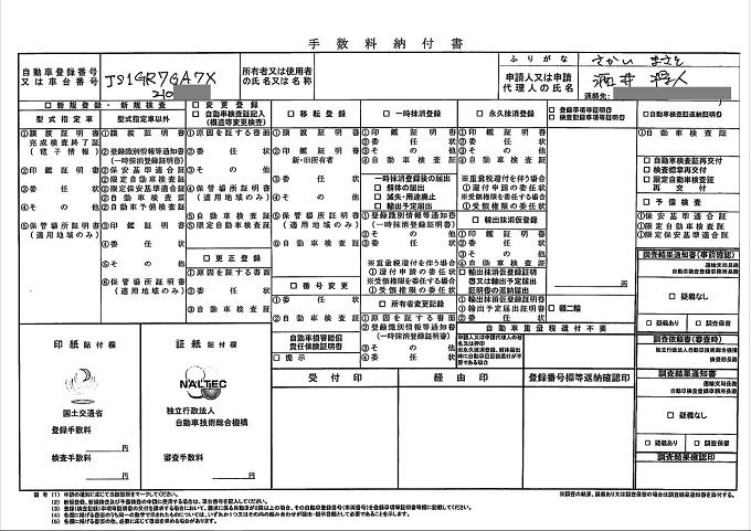 ここまで準備ができたら、陸運局備え付けの書類(用紙・様式)に必要事項を記入していきます。