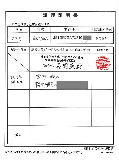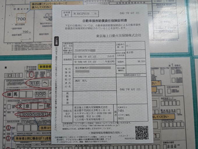 自賠責保険を切ってもらいます。(「5.自賠責保険証明書」)
