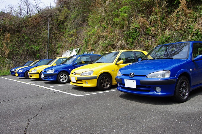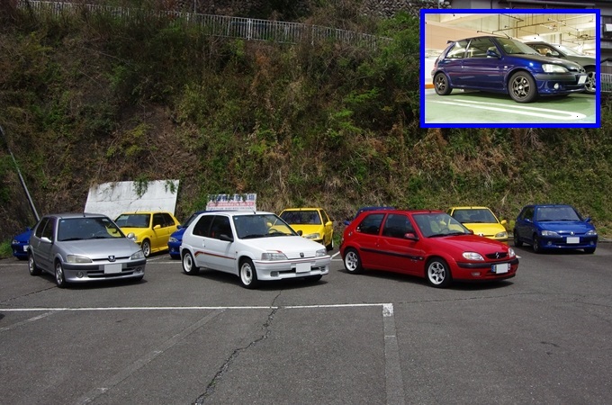 ここに、愛知県からご参加頂いた「ラリックマ」さんの106、「ひろゆき」さんのテンサンラリー、そして「Akemi」さんのサクソを並べまして…