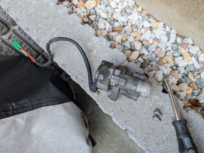 鍵穴潤滑剤で誤魔化していたST250E君のメインキーがいよいよ回らなくなってきたので、分解・清掃することにしました。