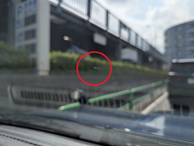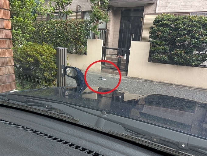 少し前…いや、随分と前の話ですが、ジムニーシエラ君で街中を走っていると、パチンッ!と飛び石がフロントガラスに直撃したようで、ビビが入ってしまいました。