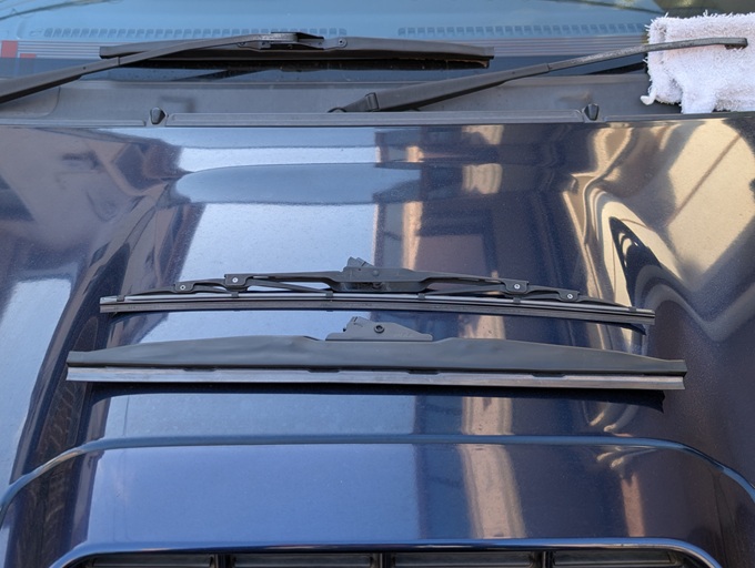 先日、雪が降る可能性がある地域へ出かける用事があったので、シエラ君のワイパーをスノーワイパーに交換しました。