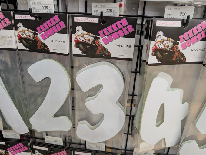 昔の走り屋たちは、レーサー気取りで挙ってゼッケンナンバーステッカーをバイクやヘルメットなどに貼っていた訳です。