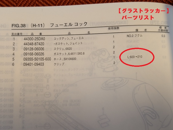 純正ホースは、以前にグラストラッカーのキャブレターオーバーホールの際に燃料ホースも交換したので、ストックがあります。