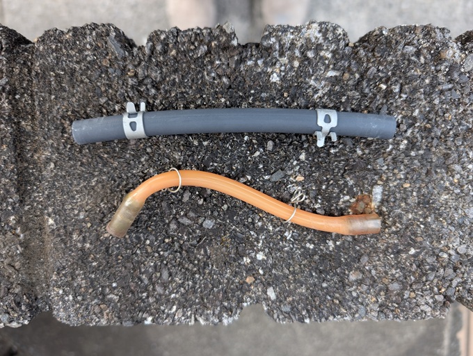 気を取り直して、旧ホースを外しました。
