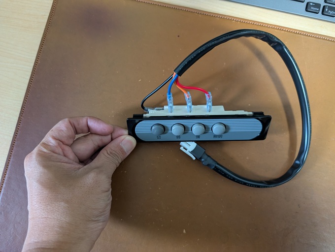 換気扇スイッチのうち1つをダミーボタンとして扱うだけなので、配線もポン付けです。