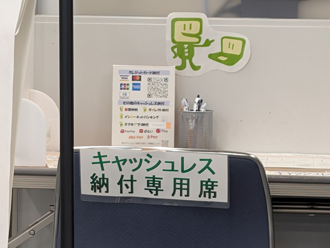 最近はキャッシュレス納付のコーナーの方が広くスペースを取っています。
