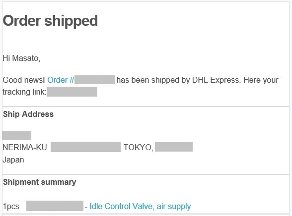購入から2日後の本日(2/24(火))には、早速「発送完了」の連絡が届きました。