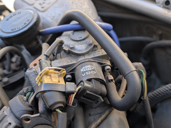 ECUからの信号を受けて開閉し、スロットルバルブを迂回する空気の量を調整することで、アイドリングの回転数を適正に保つ(エンジンが停止しない)ように制御している部品です。