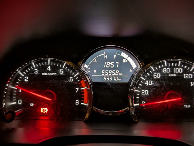 1年前の6ヶ月点検時は「66,765km」だったので、約1年で「16,605km」走った計算になります。