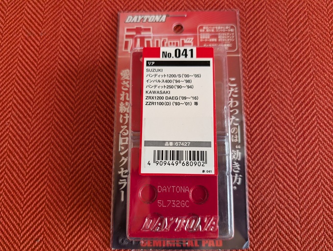 昔はデイトナには「赤パッド」と「緑パッド」の2種類があって、私は当時乗っていたXJR400のフロントダブルディスクに、「赤・緑/緑・赤」という順番で左右非対称に組んだことがあります(笑)