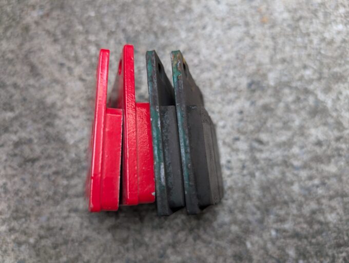 その他、ベスラなどからも緑色のパッドがラインナップされているので、この既存のブレーキパッドのメーカー特定はできませんでした。