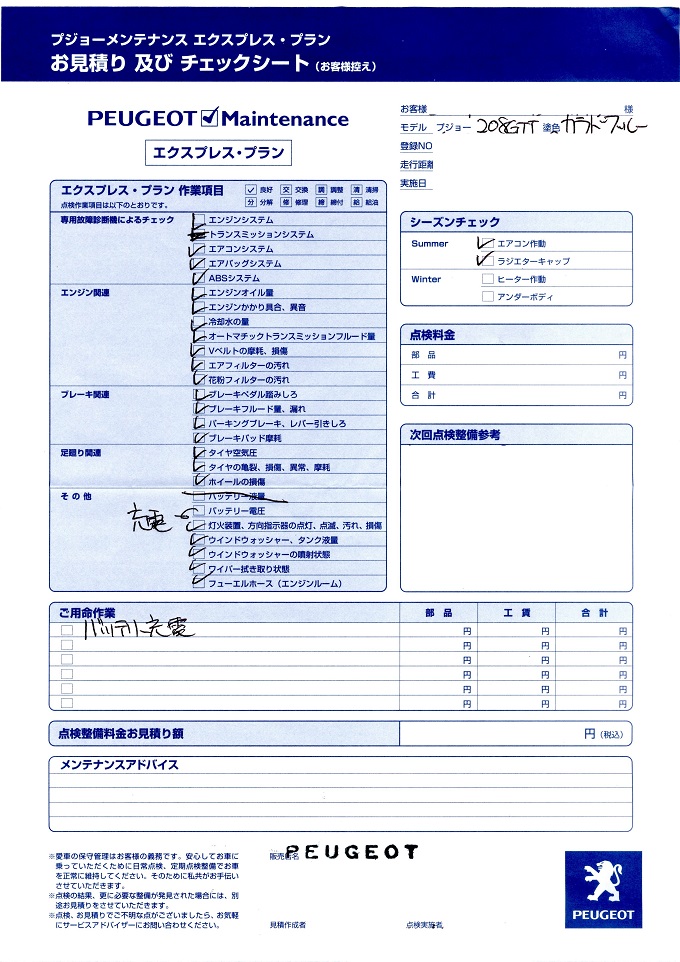先日、プジョー208GTiを少し遅めの初回6ヶ月点検に出してきました。