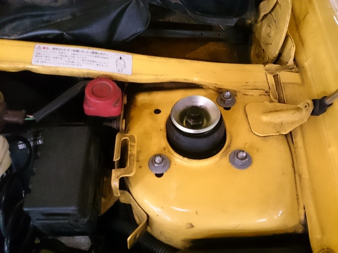 今回の車検では、エンジンマウントや足回りのブッシュ類の状態を念入りに見ていただきたいとお願いしており、その結果、交換推奨となったフロントアッパーマウントとその周辺の付属部品を純正部品にて交換して頂きました。