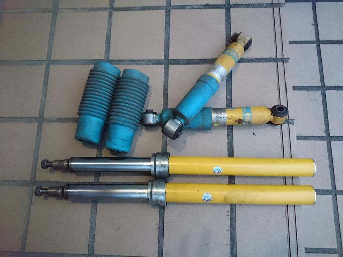 右フロントのショックからコトコトと異音が生じており、これはショック本体のガタつきによるものとのご指摘を頂きましたので、前後とも現在装着しているものと同じもの(ビルシュタインB6)に交換しました。