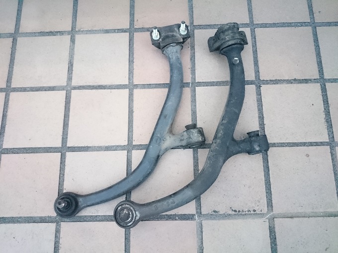 なお、取り外したロアアームは、目立った損傷もなく今後ボールベアリングやブッシュ類を打ち変えて使用する可能性がゼロではないので、しばらくはストックとして保管しておくことにします。