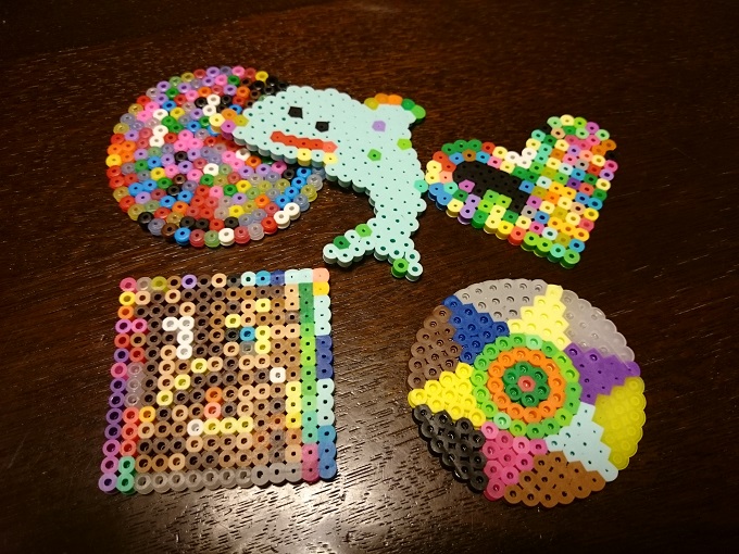 写真:完成したアイロンビーズ(右下が私の作品です)