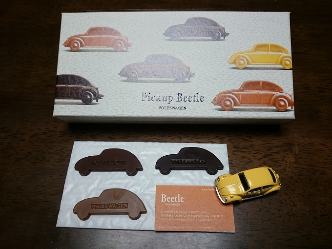 プリンで有名なモロゾフ社とフォルクスワーゲン社のコラボ商品「ビートル(Beetle)チョコ」です。