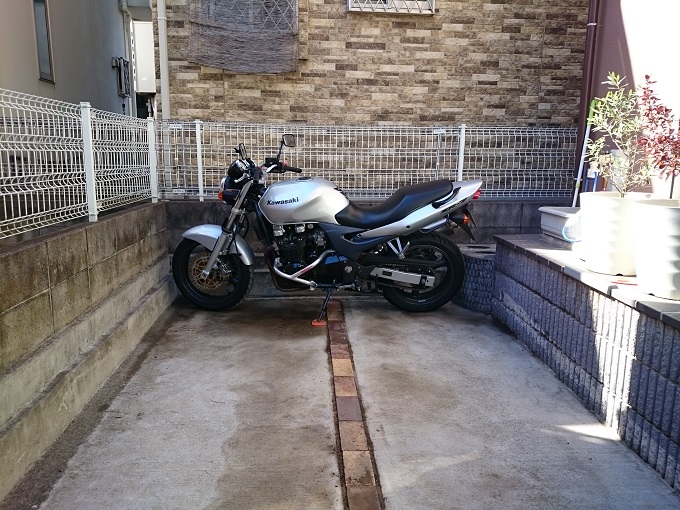 ちなみに、ZR-7はコンパクト&軽量な部類に入ると言えども一応は大型バイクですから、この車体をこの向きに駐輪するには、相当回数切り返す必要があり、それはそれは大変です。
