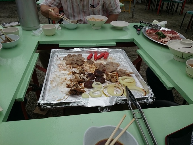 味噌作り体験の後は、前回に引き続きバーベキューを行い、地元産のお肉と野菜、そして名産であるきのこをお腹いっぱい頂きました。