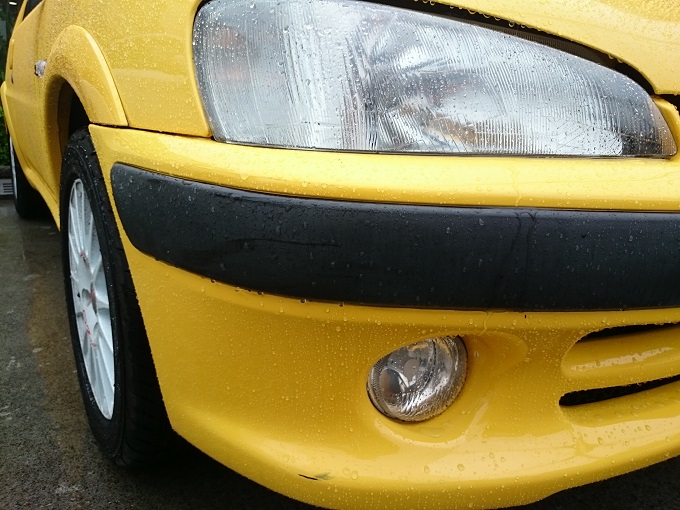 先日、お借りしている月極駐車場内でプジョー106が小さな「もらい事故」に遭ったのですが、ようやくキズの補修が完了しました。