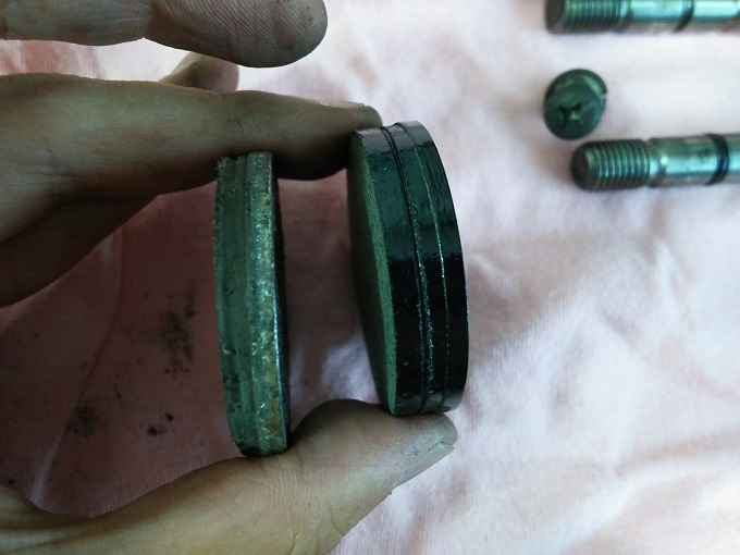 キャリパーのボルトには、本来2つずつ(計4個)のOリングが入っているはずなのですが、1つしか入っていませんでした。
