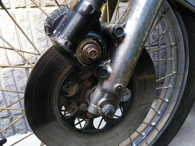 家族が寝静まってから、せっせと作業したZ200のフロントブレーキキャリパーの分解・清掃が完了し、時間を見つけて車体に戻してみました。
