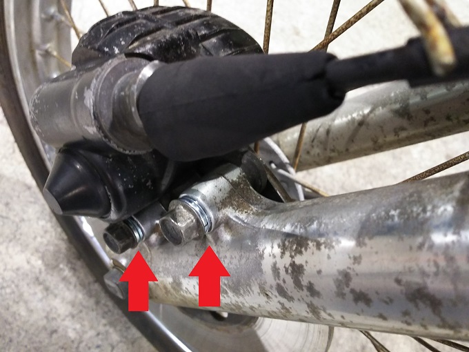 そして、これも毎度同じ作業の繰り返しですが、調整ネジとロックナットでブレーキの調整を行います。