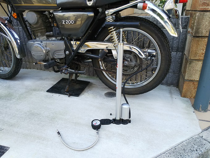 ただ、Z200の方は見るからに空気圧が不足している様子だったので、自慢の自転車用の空気入れで空気圧を調整してから近所を1周走らせました。