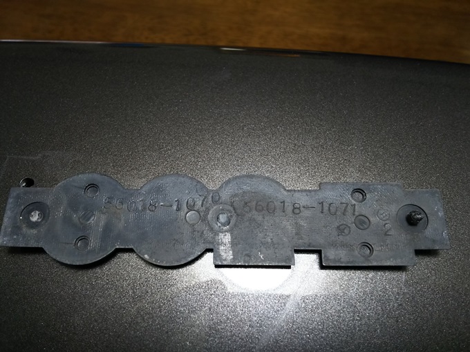 エンブレムの裏には本来3つの突起があるはずなのですが、経年劣化で1つしか生き残っていませんでした。