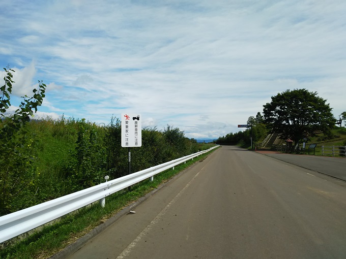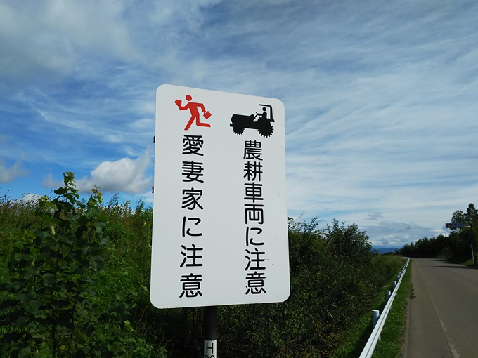 この写真は群馬県吾妻郡嬬恋村の「つまごいパノラマライン(北ルート)」で撮影したものですが、周りには嬬恋村の名産である高原キャベツ畑が沢山あるので〝農耕車両に注意〟というのは分かります。