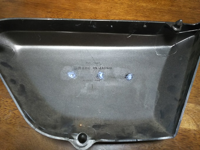 このサイドカバーは、前のオーナーさんがタンクと一緒に外注塗装されているので、できれば塗装面に両面テープや接着剤的なもの使いたくはありません。