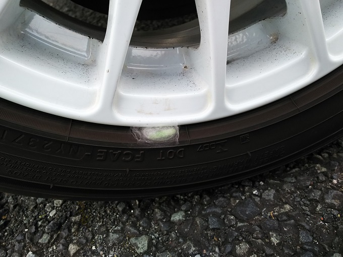 タイヤのビード部分で青虫(あおむし)が蛹(さなぎ)になろうとしていました!!