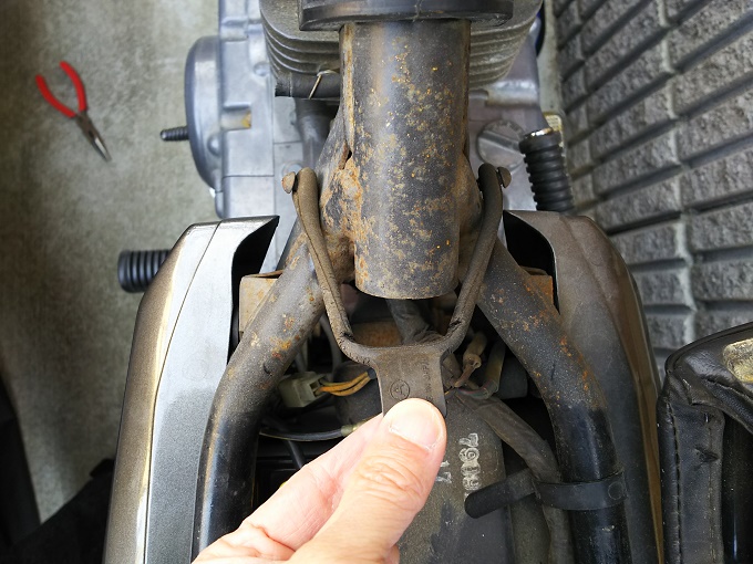 ガソリンが大体抜けきったところで、タンクを下します。