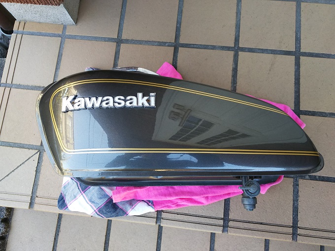 数年前にカワサキショップにてプロ塗装されているだけあって、タンクの裏側も本当にキレイですね。