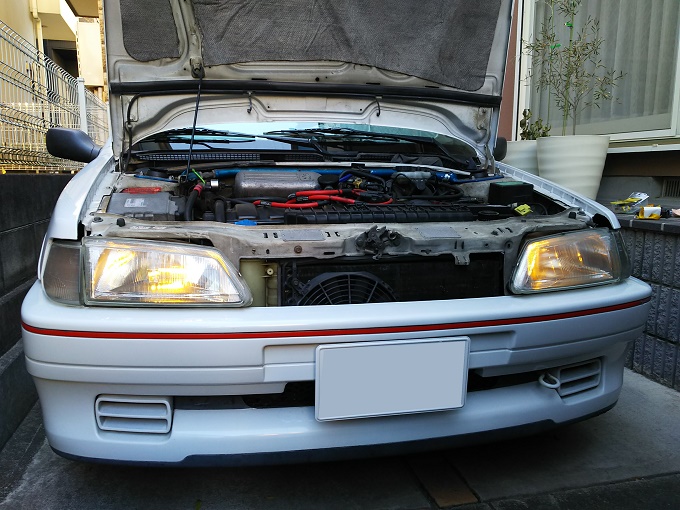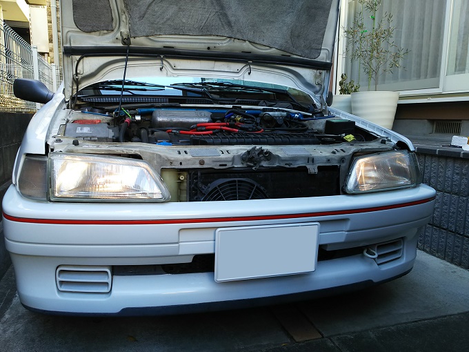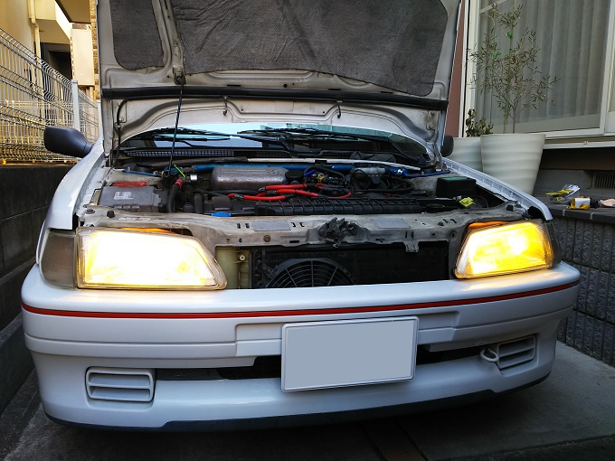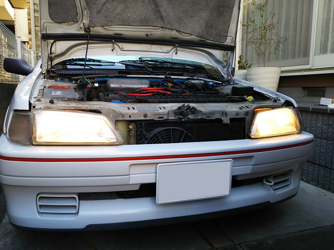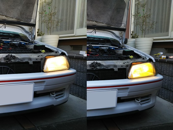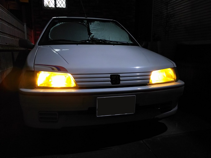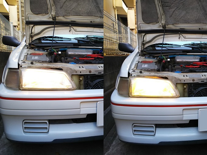 ヘッドライトバルブの方は、先日HIDを外した際に余りモノ(しかも左右で違うバルブ)を適当に付けただけだったので、交換前はこんな感じです。