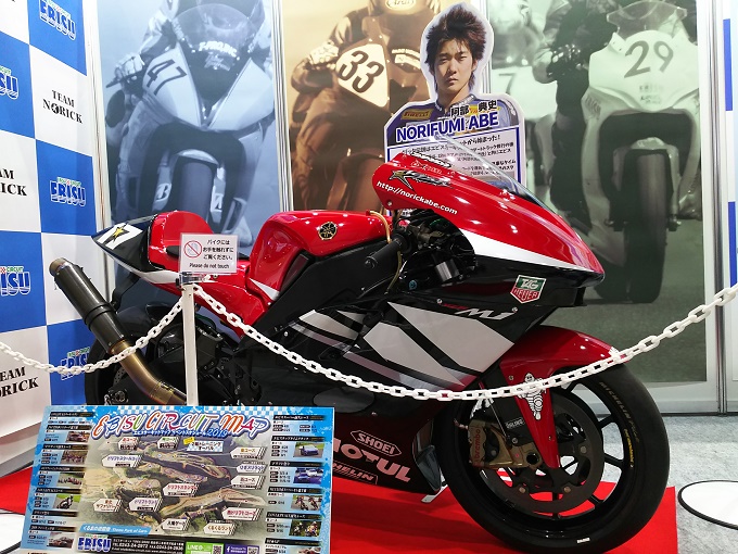 エビスサーキットさんのブースには、Norick(阿部典史選手)が2003年にMotoGPに参戦した際のマシン『YZR-M1』が展示されていました。